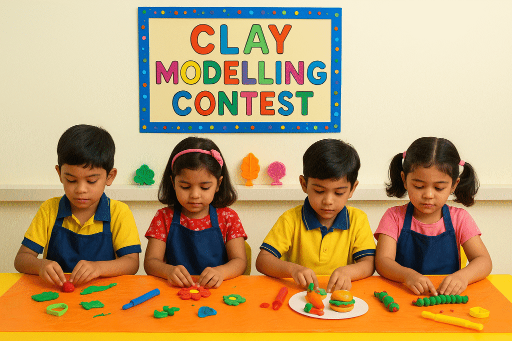 The room buzzed with joyful chatter as little hands pounded, squeezed, and rolled soft, colorful clay. Tables scattered with moulds, rolling pins, and bits of dough told the story of their enthusiasm and focus. Each child worked with remarkable care, and the finished models left teachers and visitors amazed.